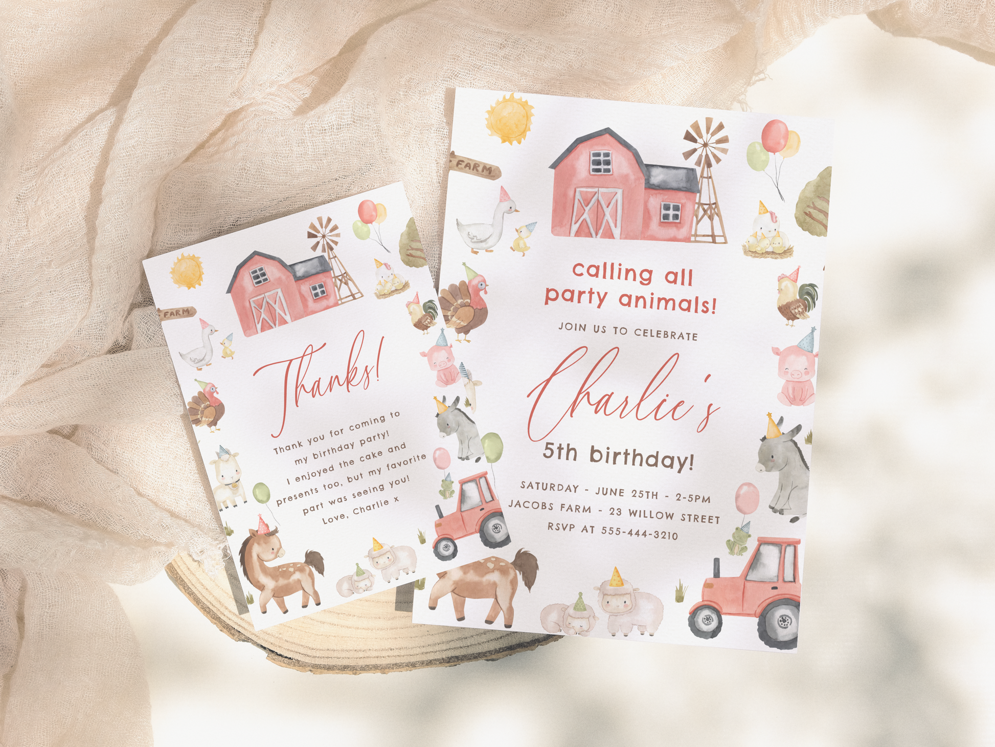 Farm Animals Barn Birthday Party Invitation Bundle