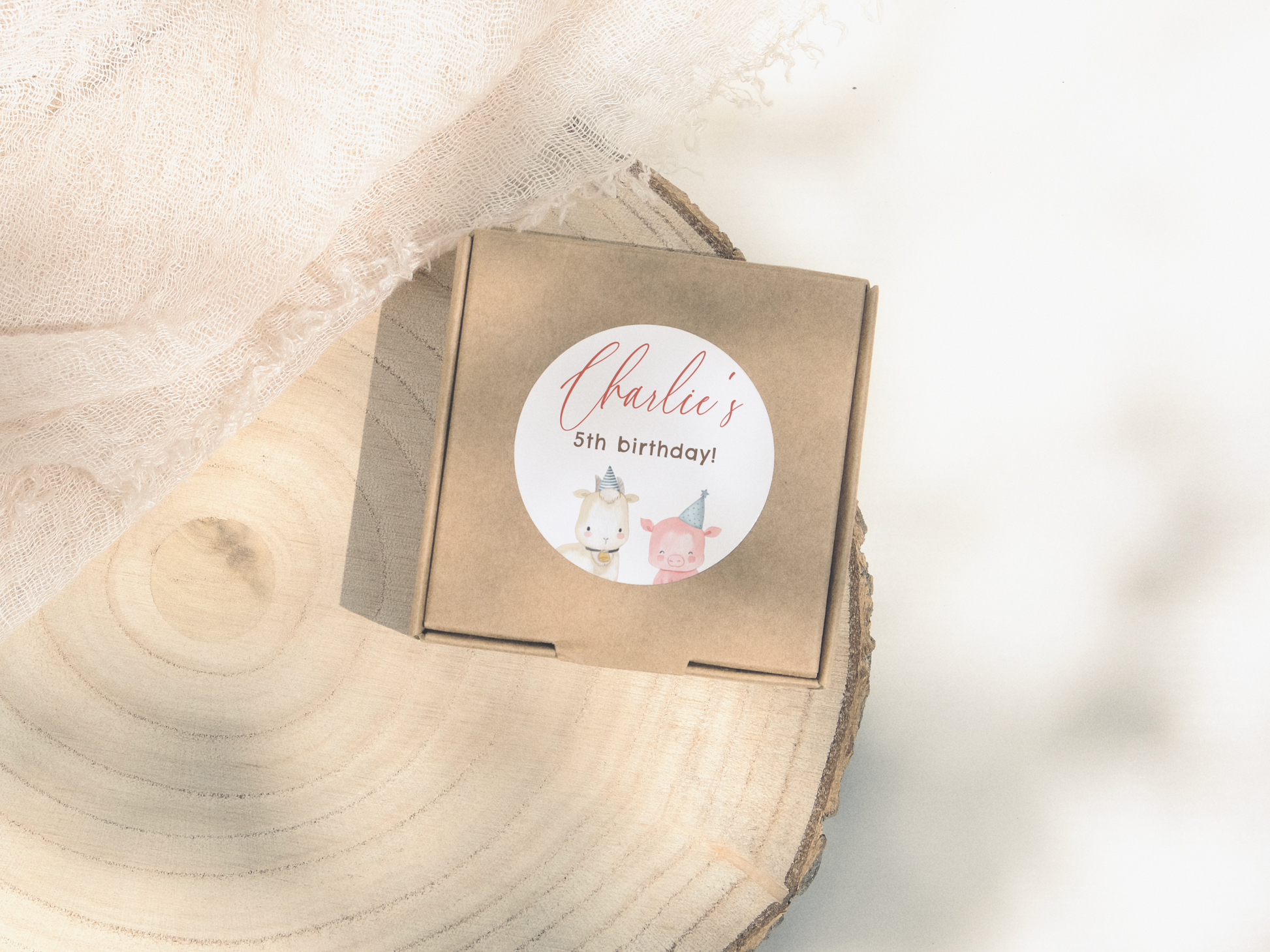 Calling all party animals! Celebrate your little one's big day with this editable farm animals birthday invitation! A gender-neutral design, featuring cute farm animals around the edge of the cards, dressed up in party hats and holding balloons. The sun is shining, there is a red barn, a little sign to the farm, and a tractor. This barnyard-themed invite is perfect for any boy or girl's birthday on the farm. Cards reverse to a red watercolor gingham pattern for a rustic country feel.
